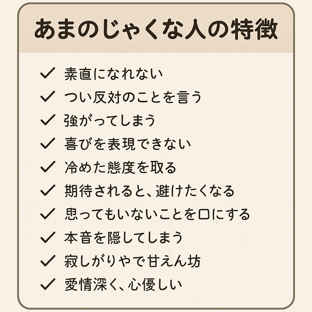 あまのじゃくな自分を、どうにかしたい 「素直になりたいのに、できない」「ありがとう」と言えばいいのに、 なぜか「別に、そんなつもりじゃないし」なんて言ってしまう。嬉しいのに、照れくさくて素直に喜べない。 心配してもらっても、「大…